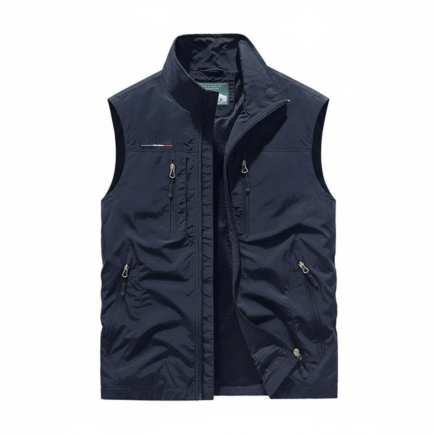 Experience the freedom of movement and practical storage with this men's outdoor vest. Featuring a full zipper closure and stand collar, this sleeveless jacket is designed for active lifestyles. Multiple pockets provide ample space for essentials, making it perfect for any outdoor adventure.