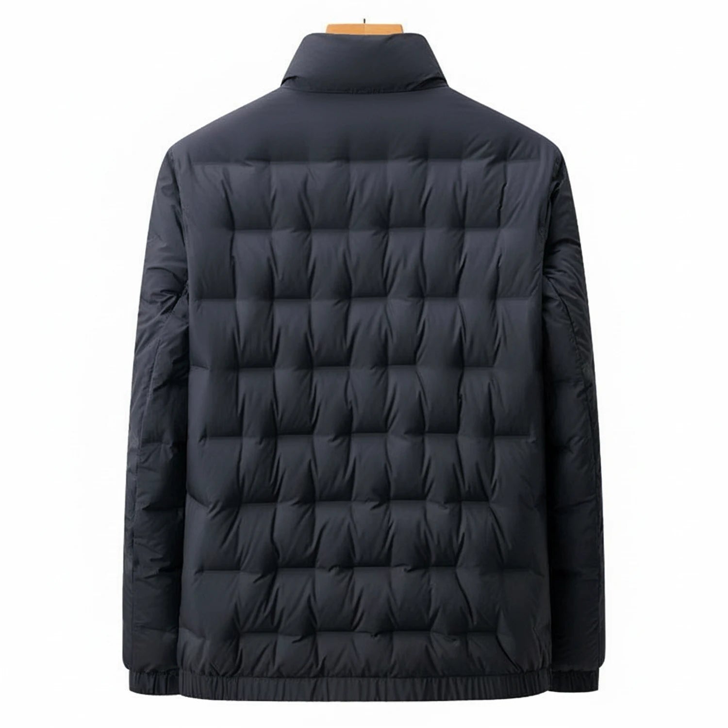Embrace the colder months with this lightweight quilted puffer jacket designed for optimal warmth and comfort. Featuring a stylish square quilted pattern and a practical stand collar, this jacket offers a blend of functionality and modern design. Zipper pockets provide secure storage, making it perfect for everyday wear.