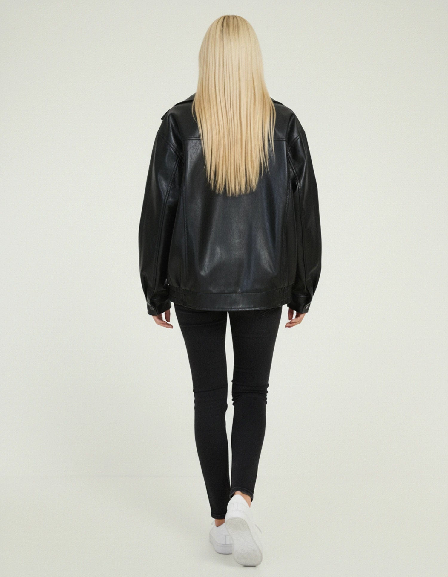 This oversized bomber jacket offers a modern, laid-back look perfect for any occasion. Its relaxed fit and classic bomber silhouette provide both comfort and style. A versatile piece, ideal for layering and completing any outfit with a touch of effortless cool.