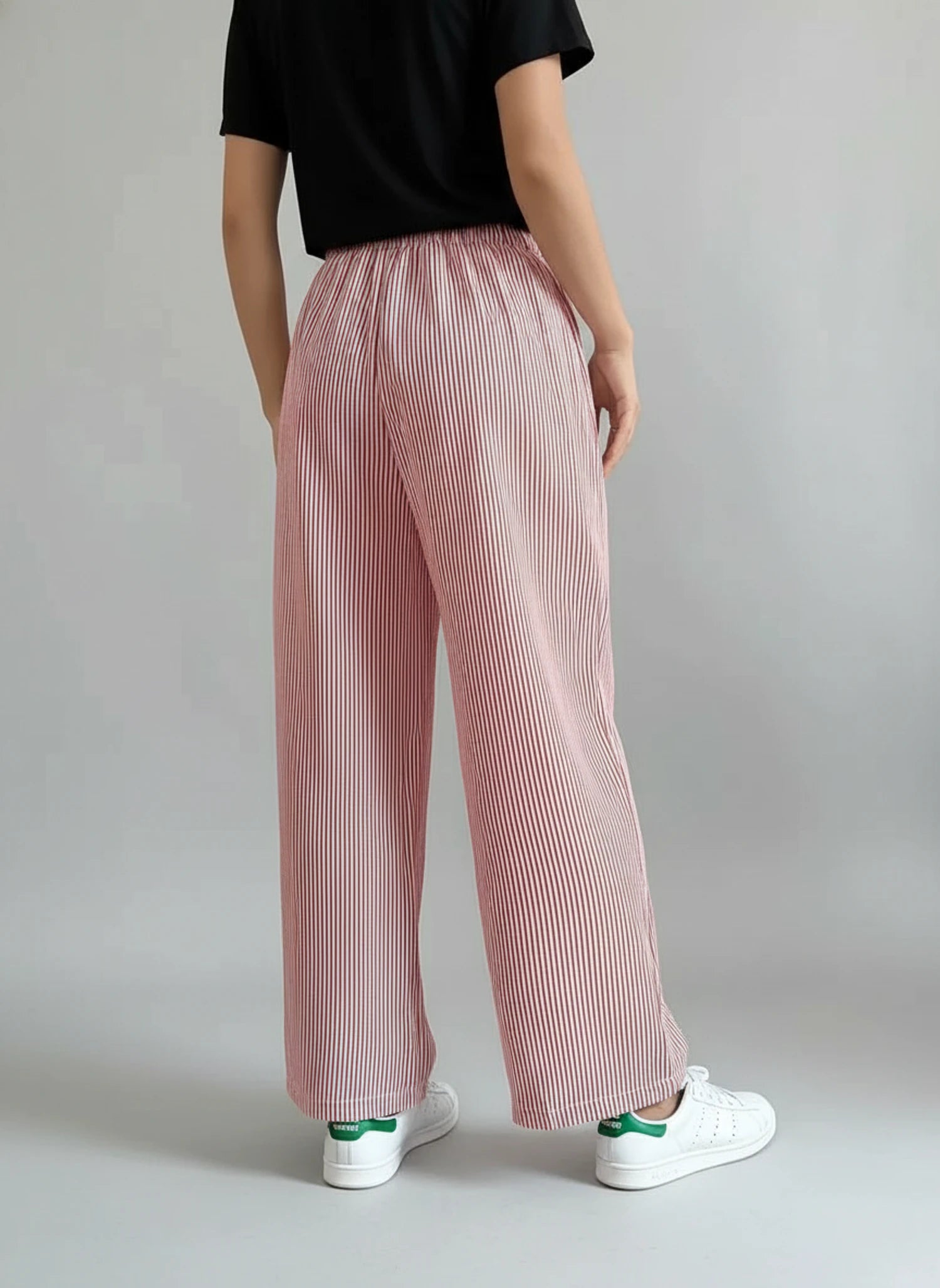 Elevate your everyday wardrobe with these chic striped wide leg pants. Designed for both comfort and style, these pants feature a flattering high-waisted fit and a convenient drawstring closure. Perfect for running errands or relaxing at home, they seamlessly blend fashion and functionality.